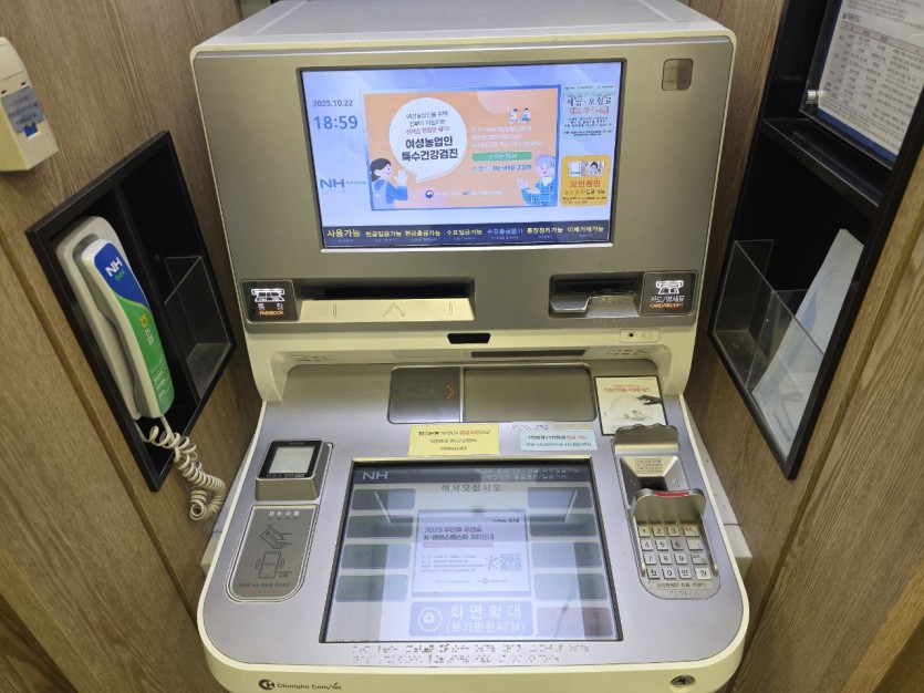 여성농업인 특수건강검진이 농협 ATM을 통해 홍보되고 있습니다.