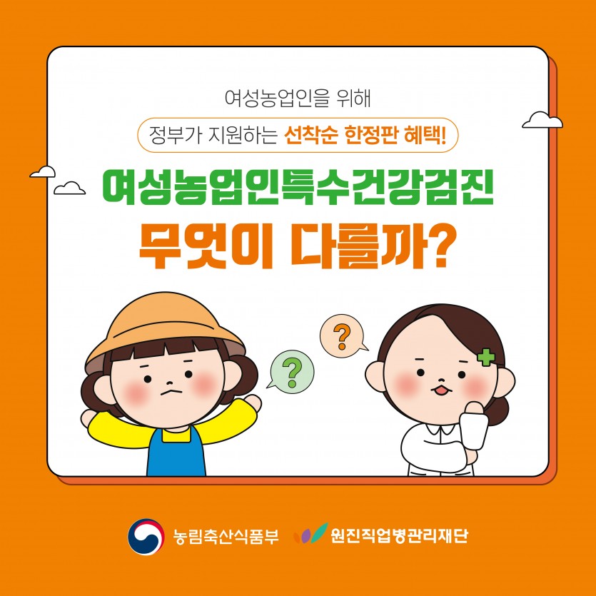 [카드뉴스] 2026년 여성농업인 특수건강검진 - 혜택안내편 페이지 정보 작성자 원진직업병관리재단 댓글 0건 조회 42회 작성일 26-04-29 15:47 목록 본문 다음글[카드뉴스] 2026년 여성농업인 특수건강검진 - 신청안내편 26.04.29 댓글 0 댓글목록 등록된 댓글이 없습니다.